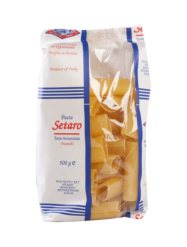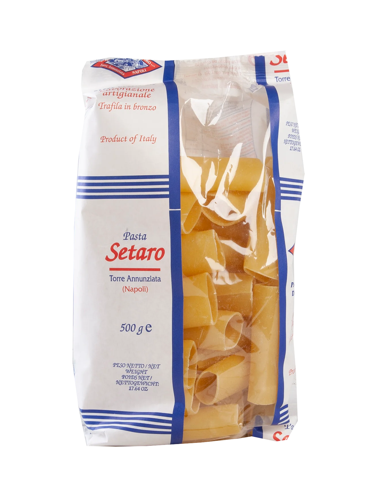 Setaro Cannelloni pasta is a traditional Italian pasta made from high-quality durum wheat semolina. The pasta is shaped into long, tube-like cylinders that are perfect for stuffing with delicious fillings like cheese, meat, and vegetables.