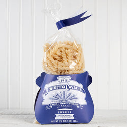 Benedetto Cavalieri Fusilli is a thin, long-cut pasta made with hard durum wheat. Their artisanal pasta is passed through bronze dies, and is slow dried at low temperatures for a perfect texture, nutty flavor and aroma, and high protein content. Perfect for tomato sauces, pesto, and pasta salads.
