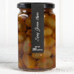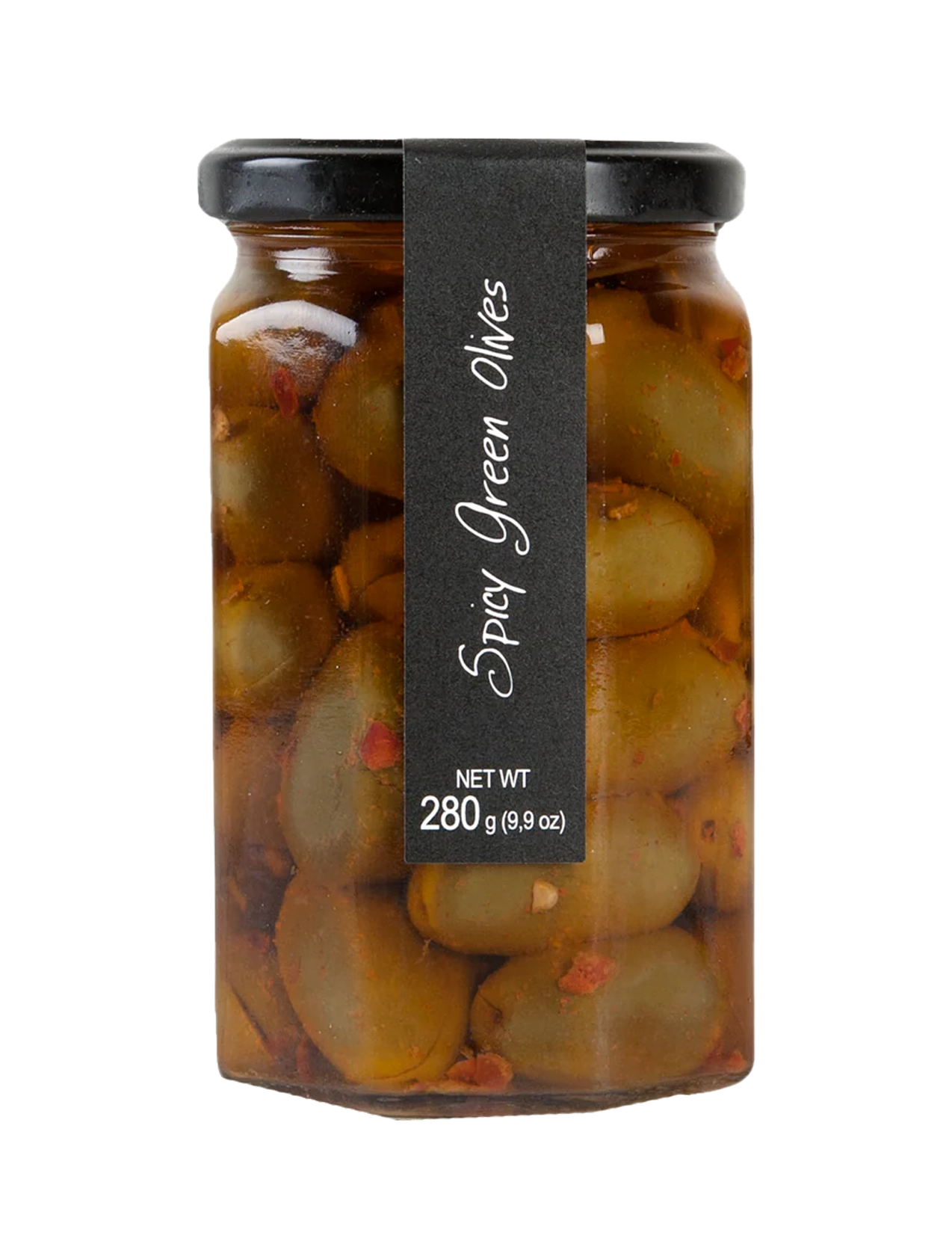 Green Olives 60%, Sunflower seed Oil, Olives Oil, Hot Chili Pepper 2%, Sea Salt, Garlic, Lactic Acid.