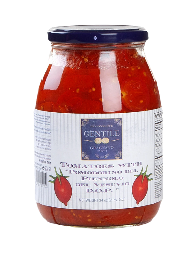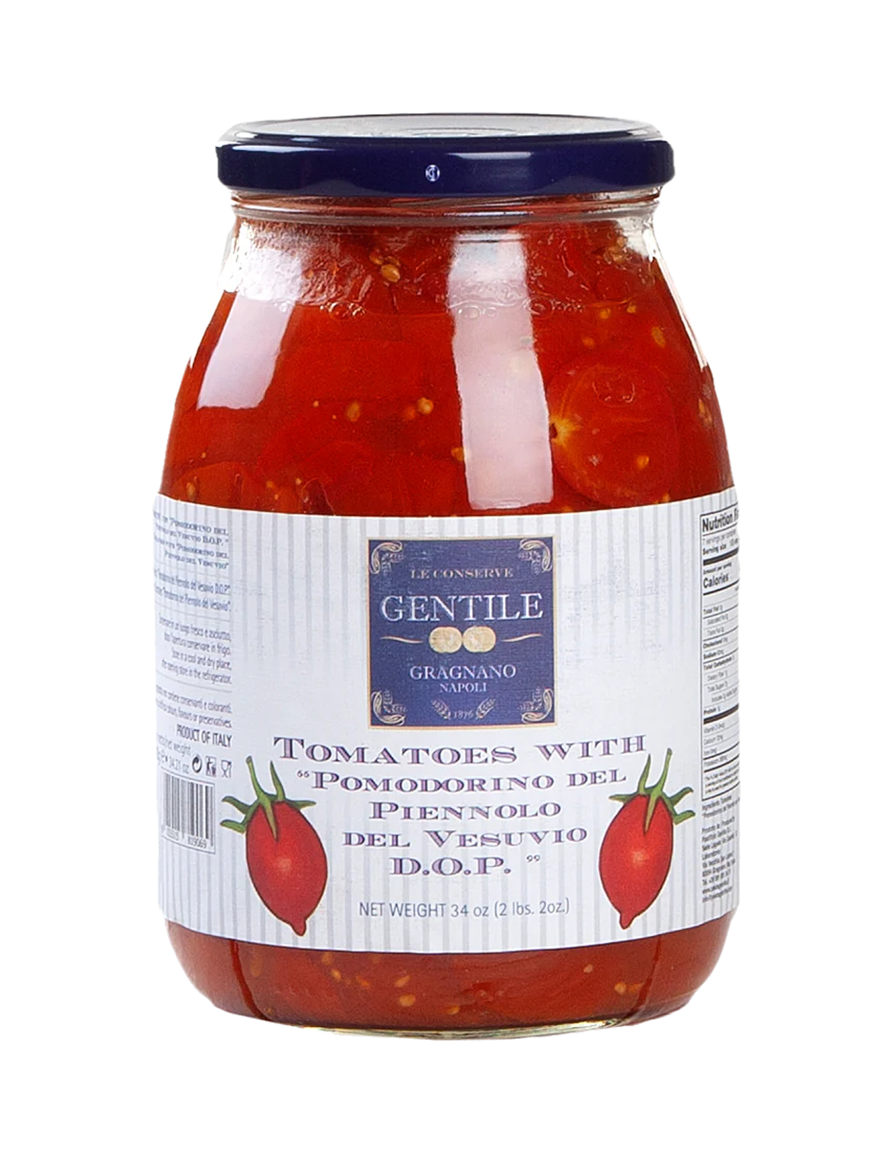 Pomodori Piennolo DOP is a small, pear shaped, deep red tomato. The unique characteristics of the Piennolo tomatoes derive from the lava-rich, potassium laden, sandy soil of the National Park of Mt. Vesuvius in which they grow. The tomato develops a slightly thick skin to protect itself from the day to night temperature fluctuations characteristic of the area. But, the skin remains soft enough to eat. Top your Margarita pizza with Gentile Piennolo DOP tomatoes for a true Neapolitan taste. Perfect for any recipe where you are looking for a fresh and bold tomato flavor that doesn't require a lot of cooking time.