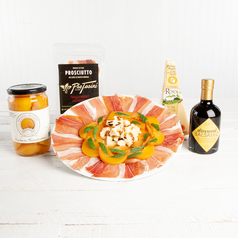 Think of it as a celebration of late summer when peaches are at their prime, paired with velvety and salty Pio Tosini 20-month aged Italian Prosciutto. The preserved Piedmont peaches in Moscato wine syrup bring that perfect sweet contrast to the salty, nutty Rosola 24-month White Cow Parmigiano Reggiano. Top it all off with Ditalia’s own Barrel Aged Balsamico, and you’ve got a dish that screams Italian countryside with a side of culinary swagger. Inspired by the iconic summer flavors at St. Louis's Louie on Demun, this bundle is perfect for entertaining or getting your snack on.