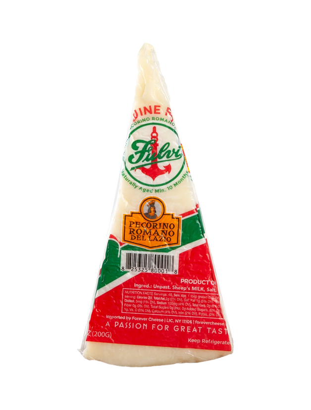 This ancient cheese is made from 100% sheep's milk collected in the countryside of Rome and produced in Nepi, 15 miles north of the city. Aged 10 months to 1 year and coated in black wax per tradition, Fulvi® is in a class by itself. What separates Fulvi® from other Pecorino Romanos is the higher butterfat content of the whole (not skimmed) sheep’s milk from Lazio, making it less dry and hard than those made in Sardinia. The cheese is also less salty, allowing you to enjoy its rich flavor grated or eaten as is. Even a small amount will create a hearty flavor to enhance your favorite dish. We love it for Cacio e Pepe and Carbonara pasta recipes!
