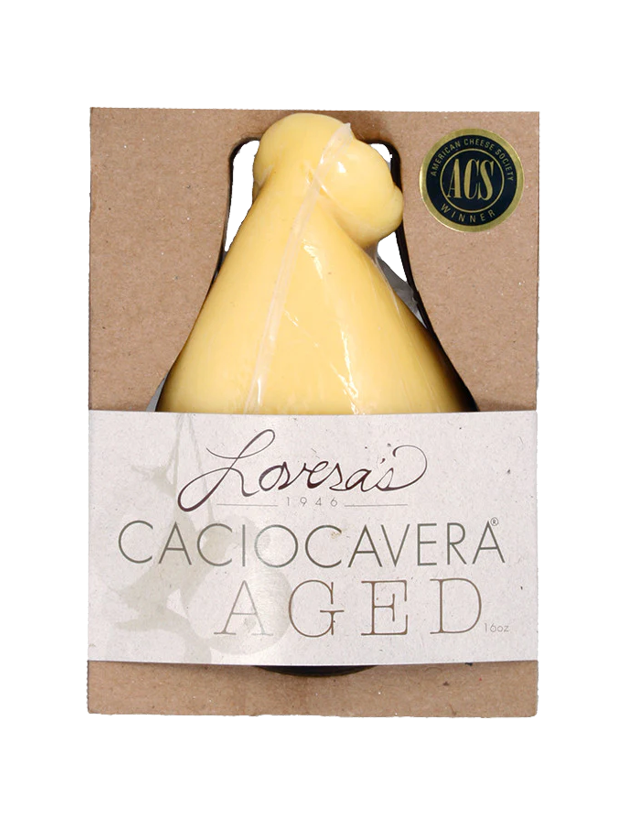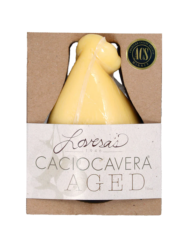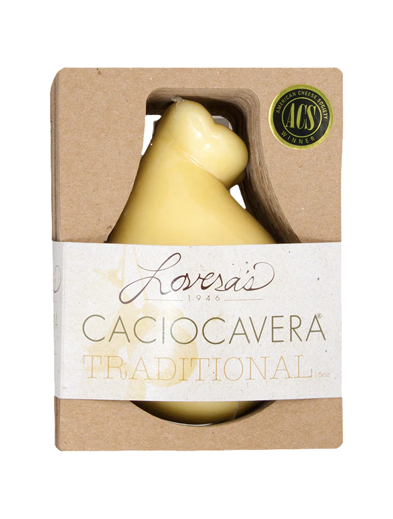 Item #SKU:DMC-124 Rich and buttery, Lovera's Caciocavera is a cross between smooth mozzarella and the earthy depth of provolone. Enjoy Traditional and Aged Caciocavera melted on your favorite sandwich, pasta dish, homemade pizza, and especially as a table cheese. The milk from all of Lovera's hand-crafted cheeses is from family owned single-source dairies, and is hormone and pesticide free.