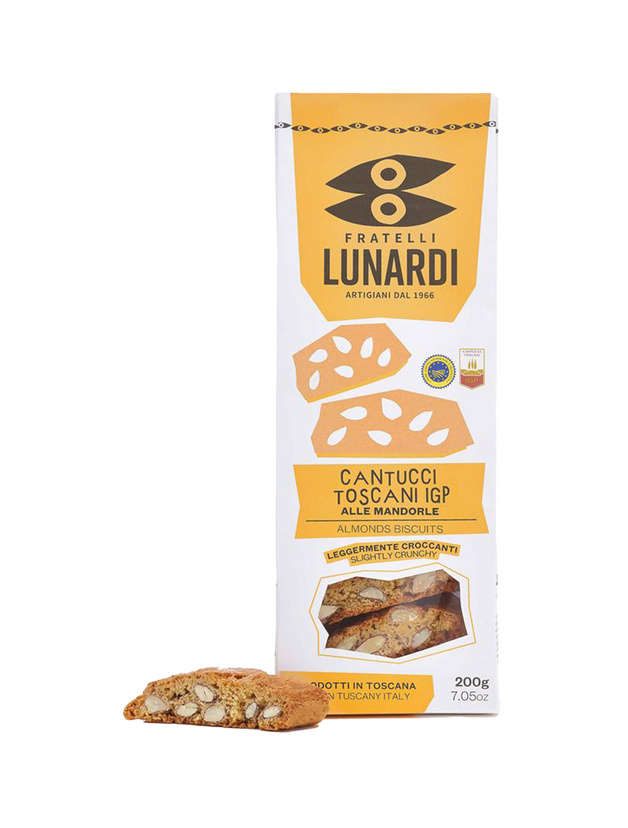 Discover the Tuscan tradition with Fratelli Lunardi IGP Almond Cantucci cookies, a timeless delicacy that encapsulates the heart of Italy's sweet dolce heritage. Crafted with a crumbly dough and generously studded with crispy almonds, these Cantucci Toscani PGI offer a unique and delicious flavor.