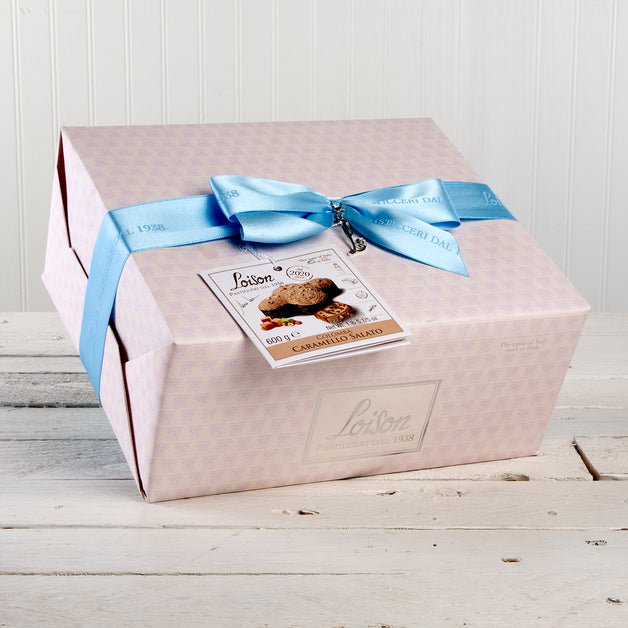 Loison Salted Caramel and Chocolate Cream Easter Cake is a decadent and indulgent Italian Easter cake that combines the flavors of rich chocolate and buttery caramel. The cake is made with high-quality ingredients, including soft wheat flour, fresh eggs, and whole milk. The dough is then enriched with a creamy and delicious salted caramel and chocolate cream filling, creating a perfect balance of sweet and savory flavors.