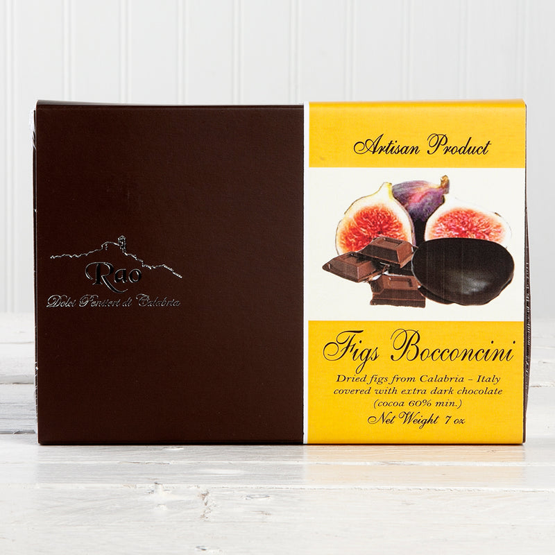 Dolci Pensieri di Calabria 60% Dark Chocolate Covered Figs (Bocconcini) are a luxurious and decadent treat created by brothers Franco and Antonio Rao. These figs are sourced from the lush orchards of Calabria, Italy, and are carefully selected and dried to perfection before being coated in rich, velvety 60% dark chocolate.