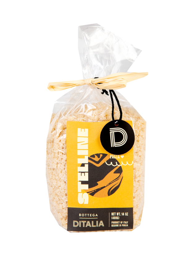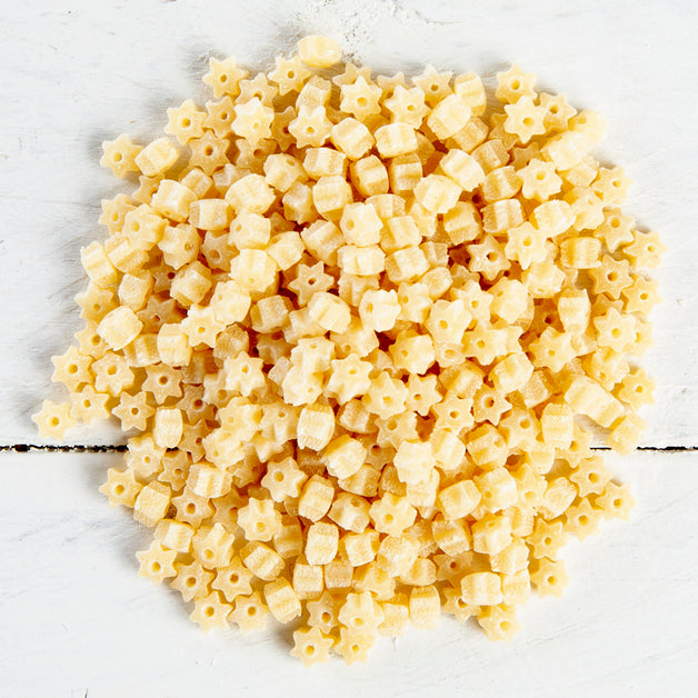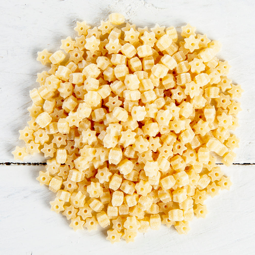 Stelline, adorable star-shaped pastas, will grow two to three times their size when added to soup broth. A favorite among kids!