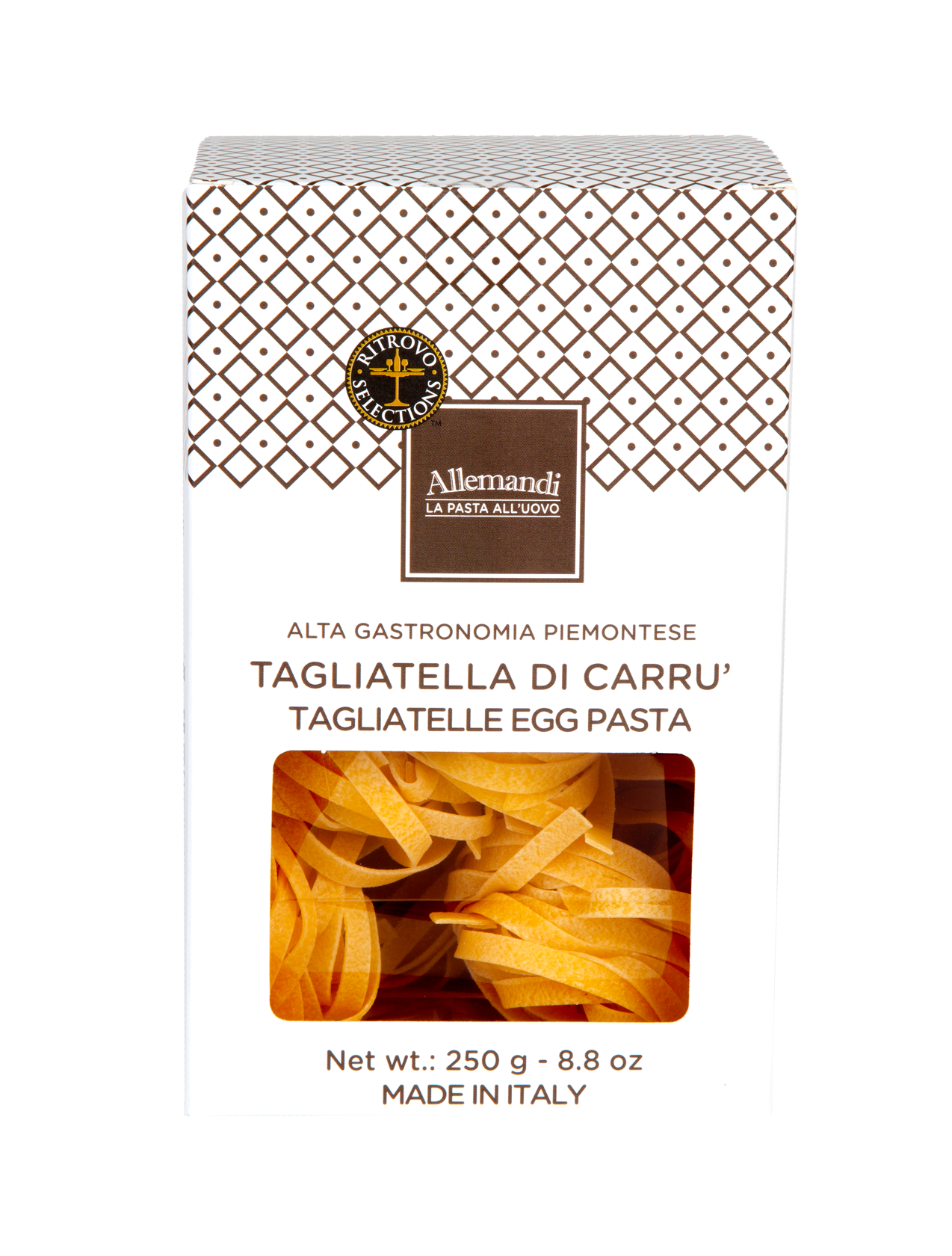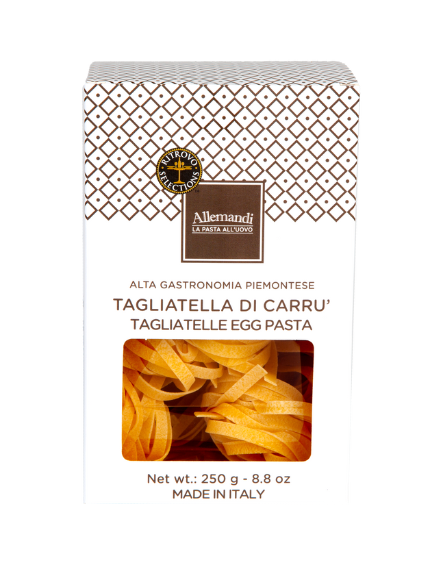 Allemandi Tagliatelle Nests are authentic Piemontese egg pasta made with rich, cage-free eggs from the renowned Langhe region. These delicate, nested ribbons offer a silky texture and exceptional flavor, perfect for pairing with hearty ragù or fresh seafood. A true taste of Italian tradition.