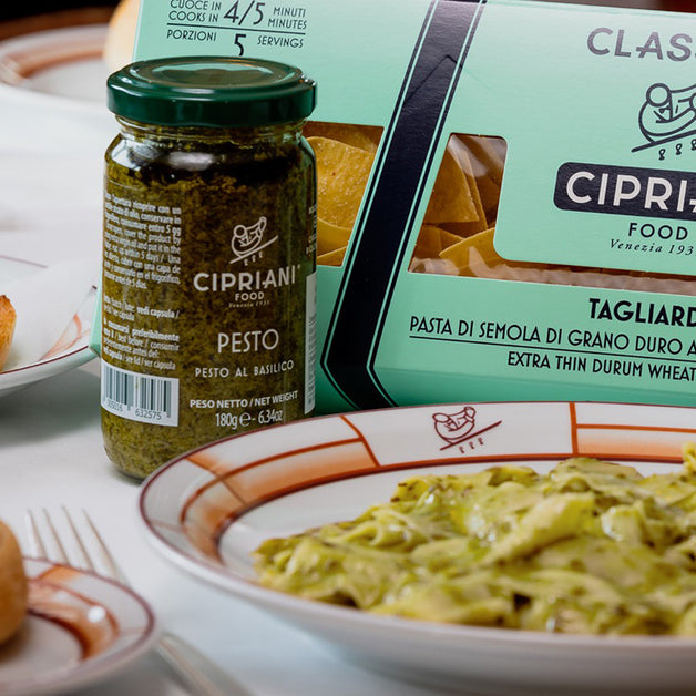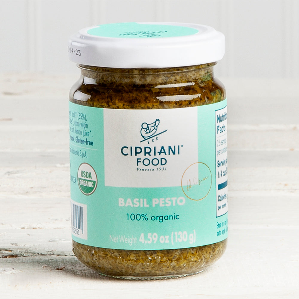 Cipriani Organic Basil Pesto is made with a strong taste from100% Tuscan basil. The basil is processed in the shortest possible time, in order to maintain all the aroma and taste of the freshly picked leaves. The absence of garlic and cheese among the ingredients makes it more digestible. To be used not only to season pasta, but also to be spread directly on bread, or as a condiment on boiled potatoes and meats.