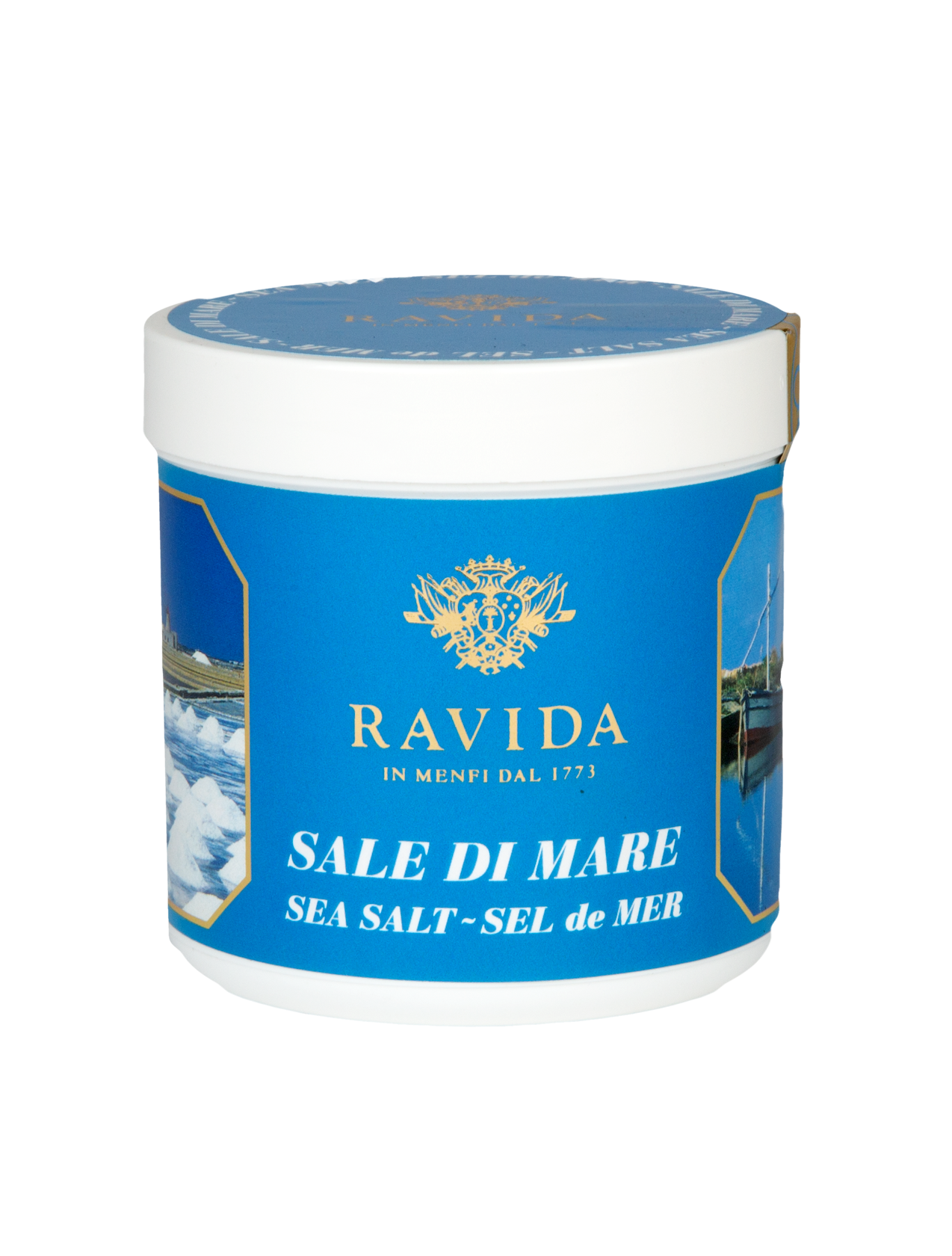 Ravida Sea Salt is harvested from the blue Mediterranean waters along the western coast of Sicily. Naturally produced from the salt pans by evaporation and ground without washing or further refining. The salt is harvested twice in the summer from saltpans at the ancient port of Trapani, an historic area where salt production can be traced back to 800 BC. The combination of different minerals and the naturally low percentage of sodium chloride in Ravida Sea Salt give it a delicate taste and plenty of flavor without being too strong or salty. Each blue and white tub of Ravida Sea Salt contains glistening snowy-white coarse grains of sea salt.
