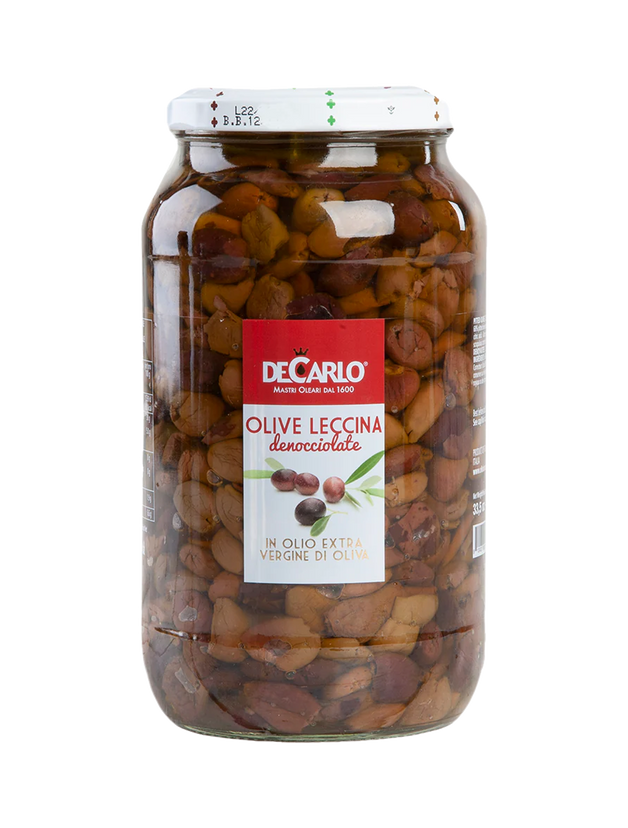 DeCarlo Pitted Leccina Olives in Extra Virgin Olive Oil are hand-selected and carefully pitted to ensure maximum flavor and convenience, then marinated in extra virgin olive oil to create a mouth-watering combination of flavors.