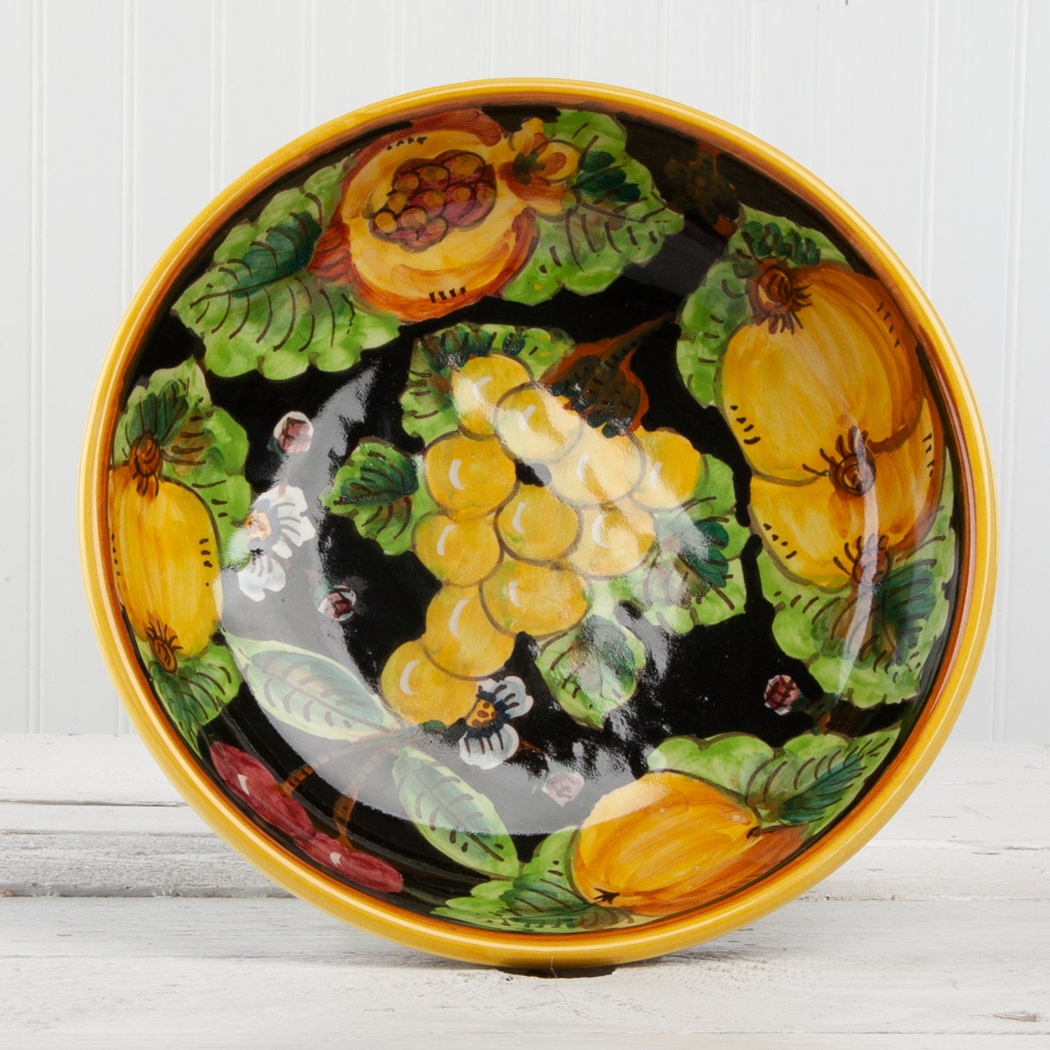 Item #SKU:PTY-BOWL-19CM-RAFLESCO Since 1980, Geribi Deruta have been creating authentic handpainted Italian ceramics in the town of Deruta, Perugia. The artists at Geribi Deruta are none other than members of the Ribigini family. This small, family owned company prides itself on producing one of kind and limited quantities of their art. All pieces from Geribi Deruta are hand signed and marked under glaze.