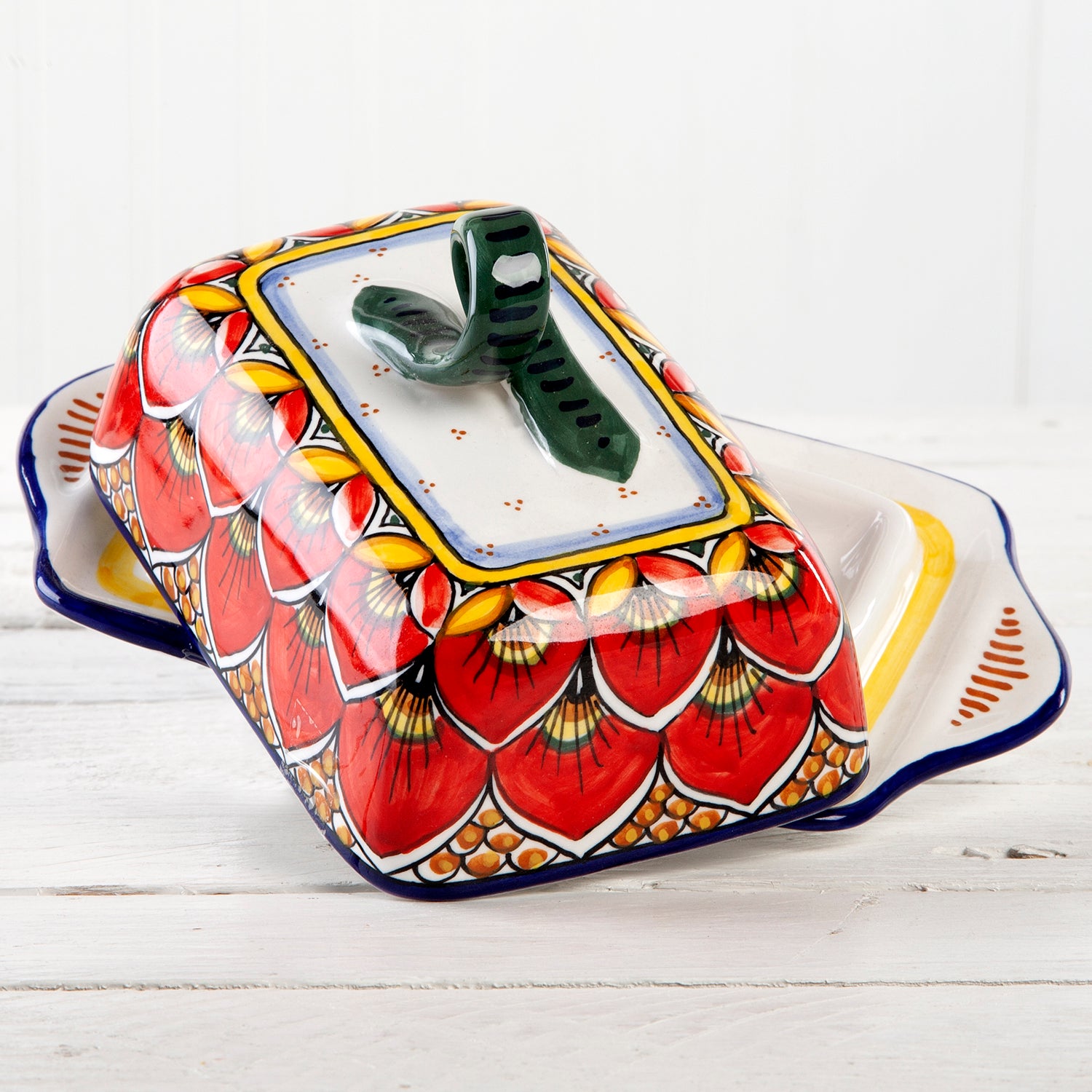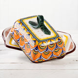 Deruta Geometric Peacock Pattern Butter Dish