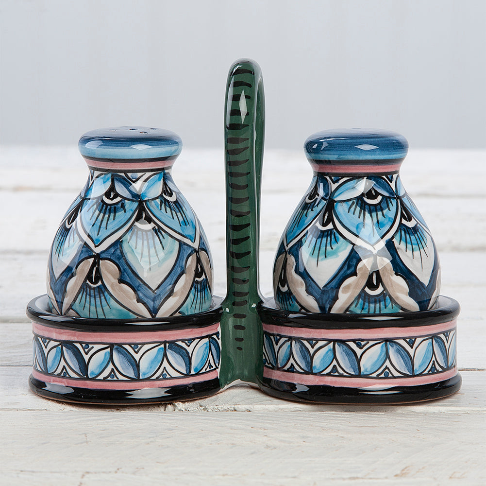 Deruta Geometric Peacock Pattern Salt and Pepper (Blue)
