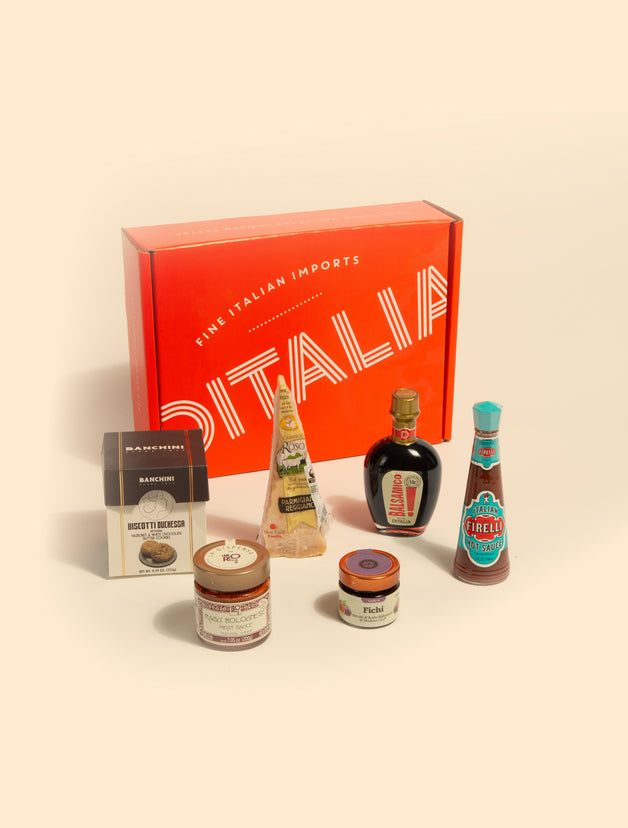 Welcome to the flavors of Emilia-Romagna, a region that defines Italian gastronomy. Start with 24-month aged White Cow Parmigiano Reggiano, the king of cheeses, sharp and complex, perfect with a drizzle of deep, velvety balsamico from Bottega Ditalia. Add a kick with Firelli hot sauce, a modern twist on tradition. Amerigo’s Ragu Bolognese is a rich, slow-cooked hug in a jar. Then there’s Castelli’s fig and balsamic jam—sweet, tangy, utterly addictive. And to finish? Banchini cookies that melt in your mouth like the finest Italian dessert. This is Emilia-Romagna in all its bold, unapologetic glory.