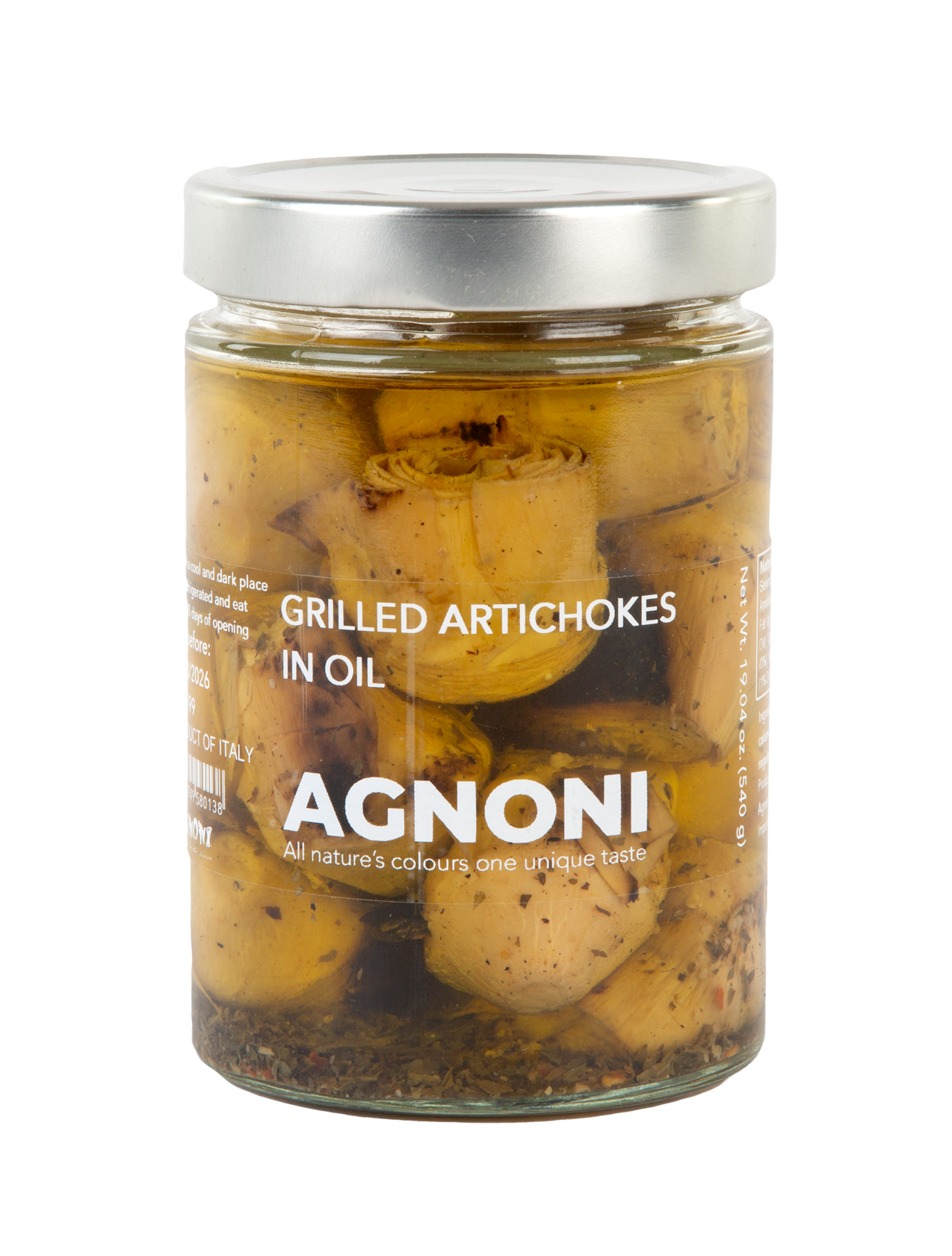 Agnoni Grilled Artichokes are prepared in the traditional cafona style, using only the most tender Roman artichokes that are hand-trimmed, blanched, and seasoned with olive oil, wine vinegar, mint, and spices. What sets them apart is a light grilling that deepens their flavor, adding a smoky richness and a touch more vinegar for balance. The result is a bold, earthy preserve that’s as versatile as it is delicious. Enjoy them straight from the jar with crusty bread, pair them with aged cheeses and cured meats, or let them shine as the centerpiece of your antipasto platter.