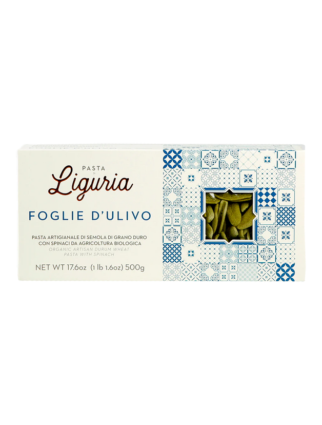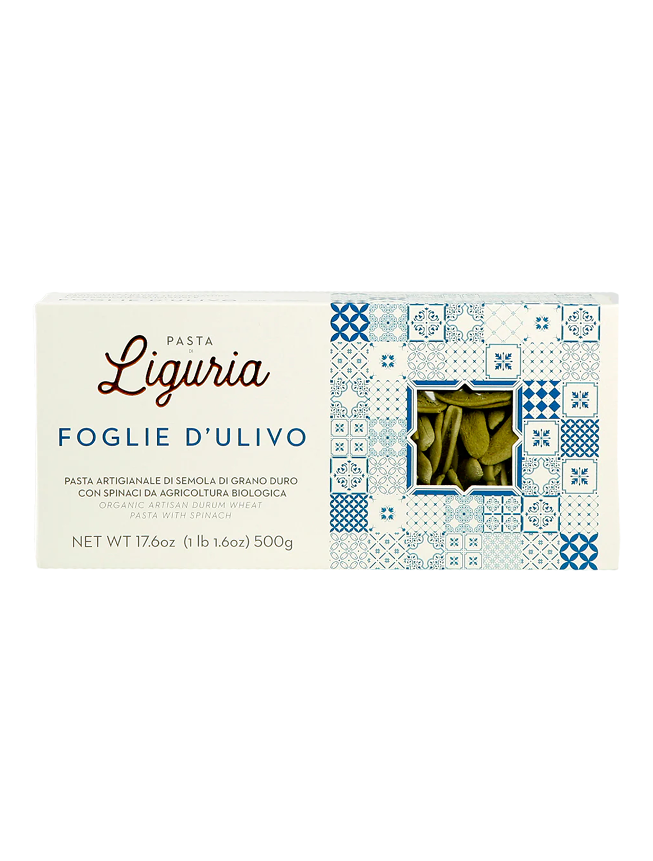 Pasta di Liguria classic olive leaf-shaped pasta is delicately flavored with spinach. Try Foglie D'Ulivo pasta with creamy vegetable sauces, extra virgin olive oil and fresh herbs.