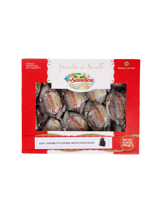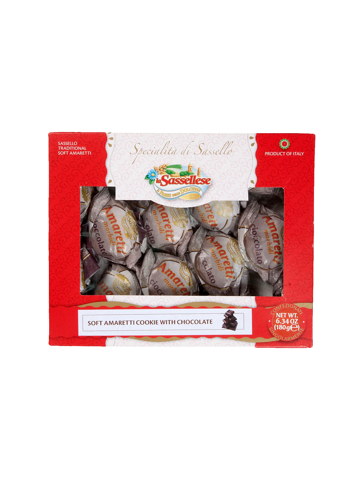 Rich in flavor of armelline almonds, chocolate, almonds, and pure sugar and egg white, La Sassallese's aromatic soft amaretti cookies are typical of central Liguria. Packaged in an appealing window box.