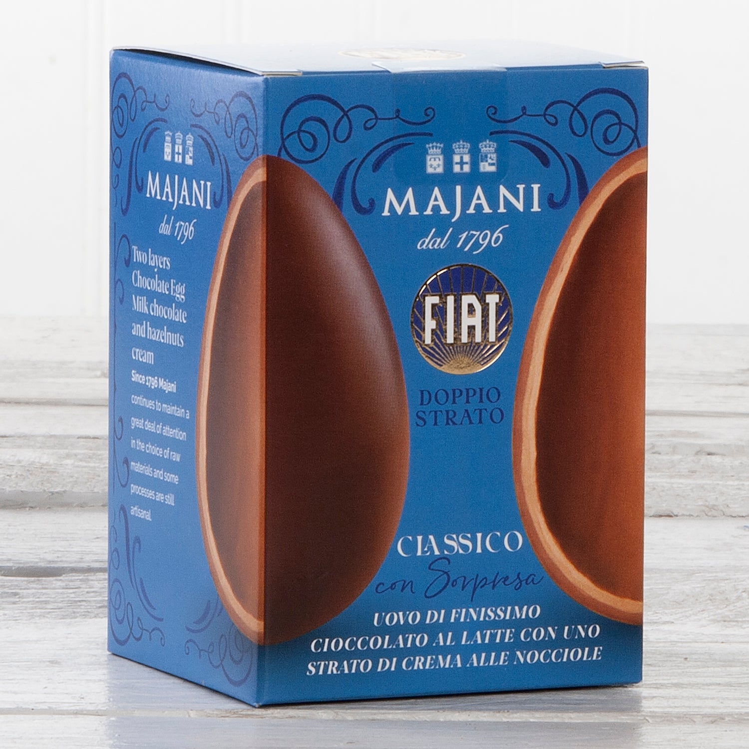 Established in 1796, Majani stands as one of Italy's most prestigious chocolatiers, renowned for its expertise in crafting exquisite confections. Their Fiat Classico is a testament to their mastery, featuring a solid shell of velvety milk chocolate and an internal layer of creamy hazelnut chocolate, perfect for Easter indulgence. Whether hidden for a festive egg hunt or savored by discerning adults, Majani's artisanal touch ensures a delightful springtime treat.