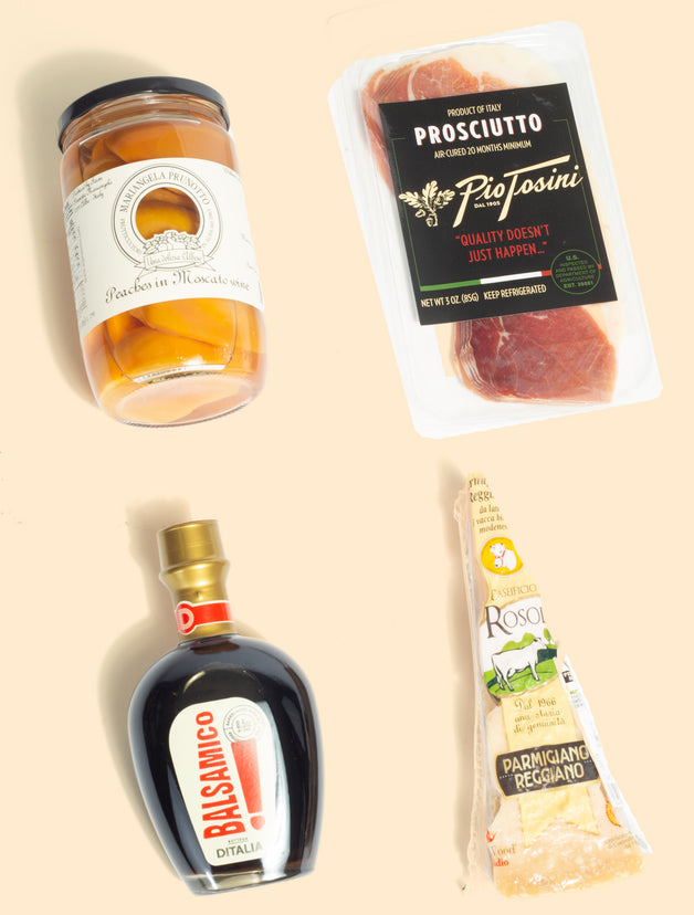 Think of it as a celebration of late summer when peaches are at their prime, paired with velvety and salty Pio Tosini 20-month aged Italian Prosciutto. The preserved Piedmont peaches in Moscato wine syrup bring that perfect sweet contrast to the salty, nutty Rosola 24-month White Cow Parmigiano Reggiano. Top it all off with Ditalia’s own Barrel Aged Balsamico, and you’ve got a dish that screams Italian countryside with a side of culinary swagger. Inspired by the iconic summer flavors at St. Louis's Louie on Demun, this bundle is perfect for entertaining or getting your snack on.