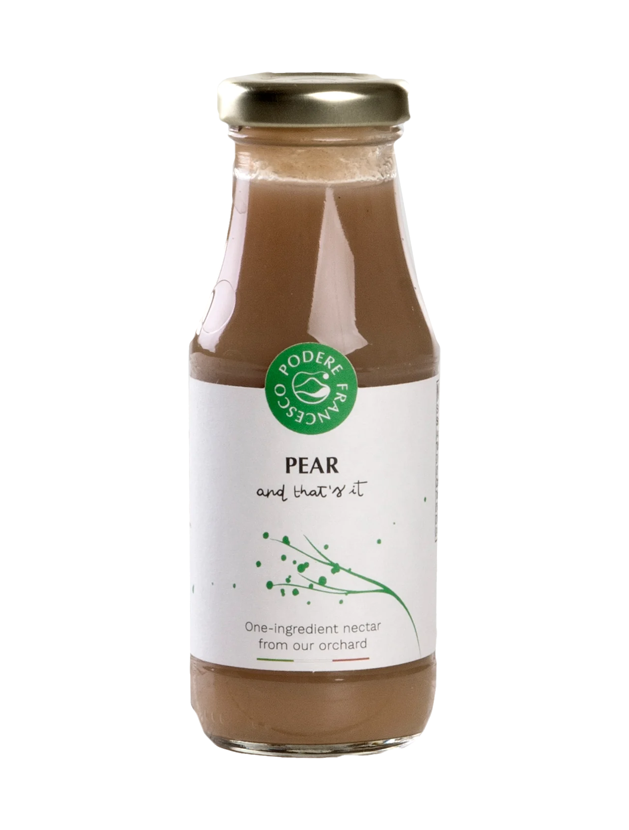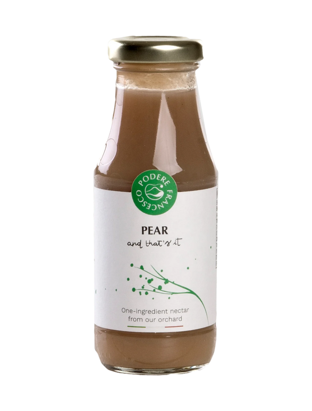 Savor the essence of ripe pears with Podere Francesco Pear Juice, a delightful blend that captures the freshly harvested fruit. This juice is akin to sipping a pear smoothie, with a texture that is delightfully grainy and a flavor that is elegantly honeyed. Harvested at the peak of ripeness, the pears lend a predominantly sweet note to the juice, complemented by an intense bouquet that is typical of this beloved fruit.