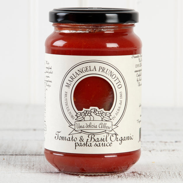 A simple organic sauce made with freshly hand-picked organic tomatoes and fresh basil from the Mariangela Prunotto farms in Alba (Italy). Each batch of sauce is made with 100% organic ingredients and contains no sugar, no concentrate and no dried herbs. A vibrant and delicious sauce like no other.