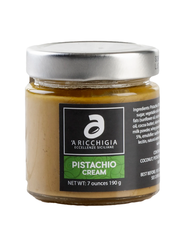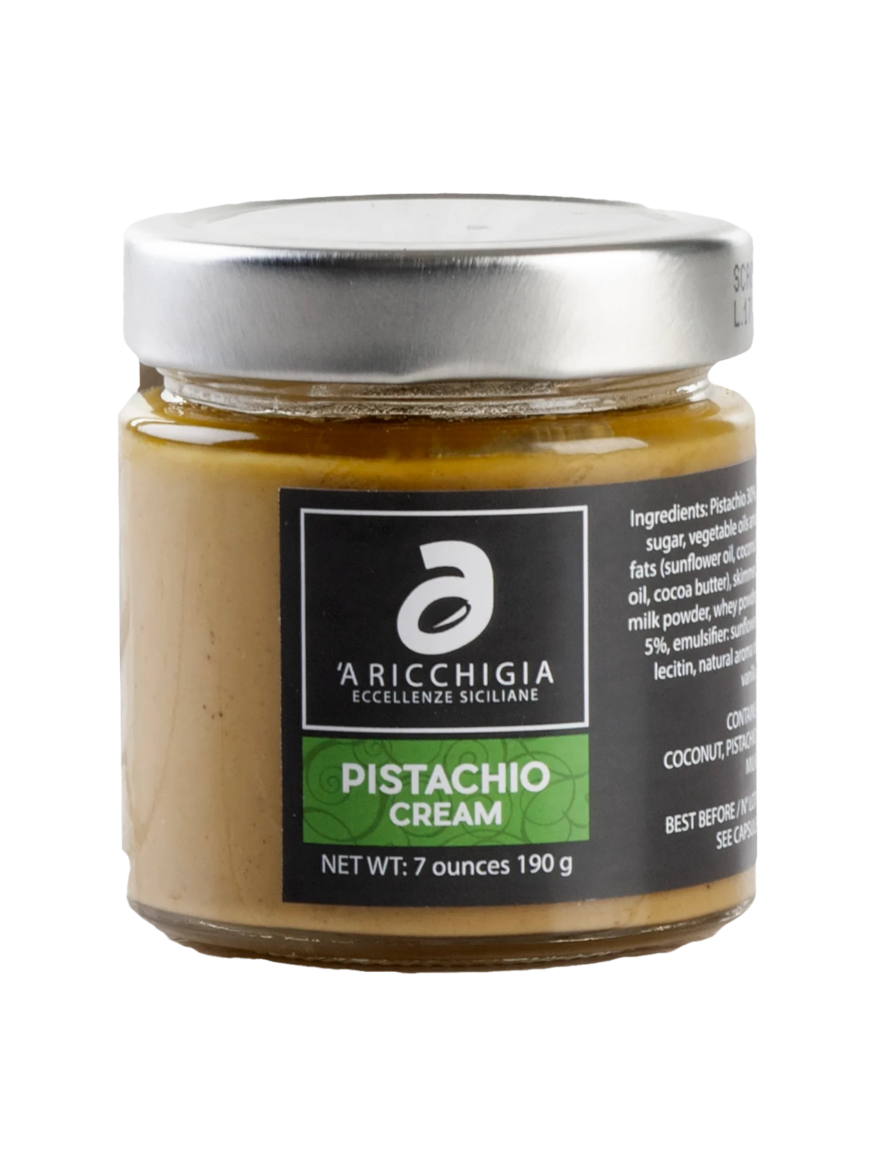 This silky Pistachio Cream produced on the slopes of Etna by A Ricchigia is a guaranteed pleaser. Sicilian pistachios are ground to perfection to create velvety smooth cream. It makes ridiculously good gelato and is concentrated enough to deliver outstanding pistachio flavor when mixed into pastry cream or ganache, whipped into mousse, or swirled into babka. Try simply spread on toasted bread or to garnish ice cream, fresh cakes and pastries.