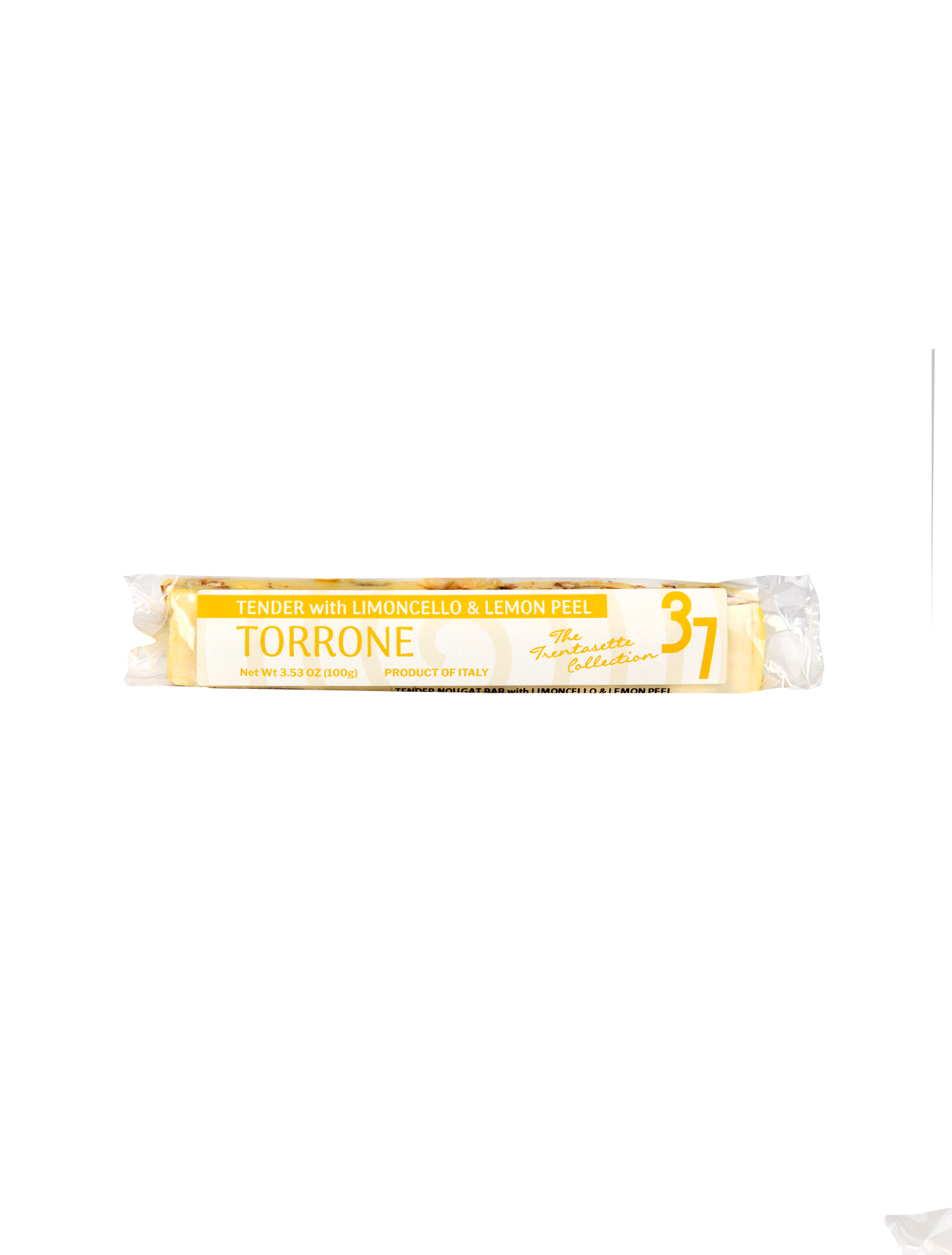 Bright and zesty, Trentasette’s Tender Torrone Bar combines the traditional soft, chewy Italian nougat with the fresh flavors of Sicilian lemons. Made with honey and whipped egg whites, this artisanal torrone is infused with Limoncello and studded with candied lemon peel for a sweet, tangy, and aromatic treat. Each bite melts in your mouth, balancing citrus brightness with tender nougat for a unique Sicilian confection. Perfect as a gourmet snack, holiday indulgence, or gift.
