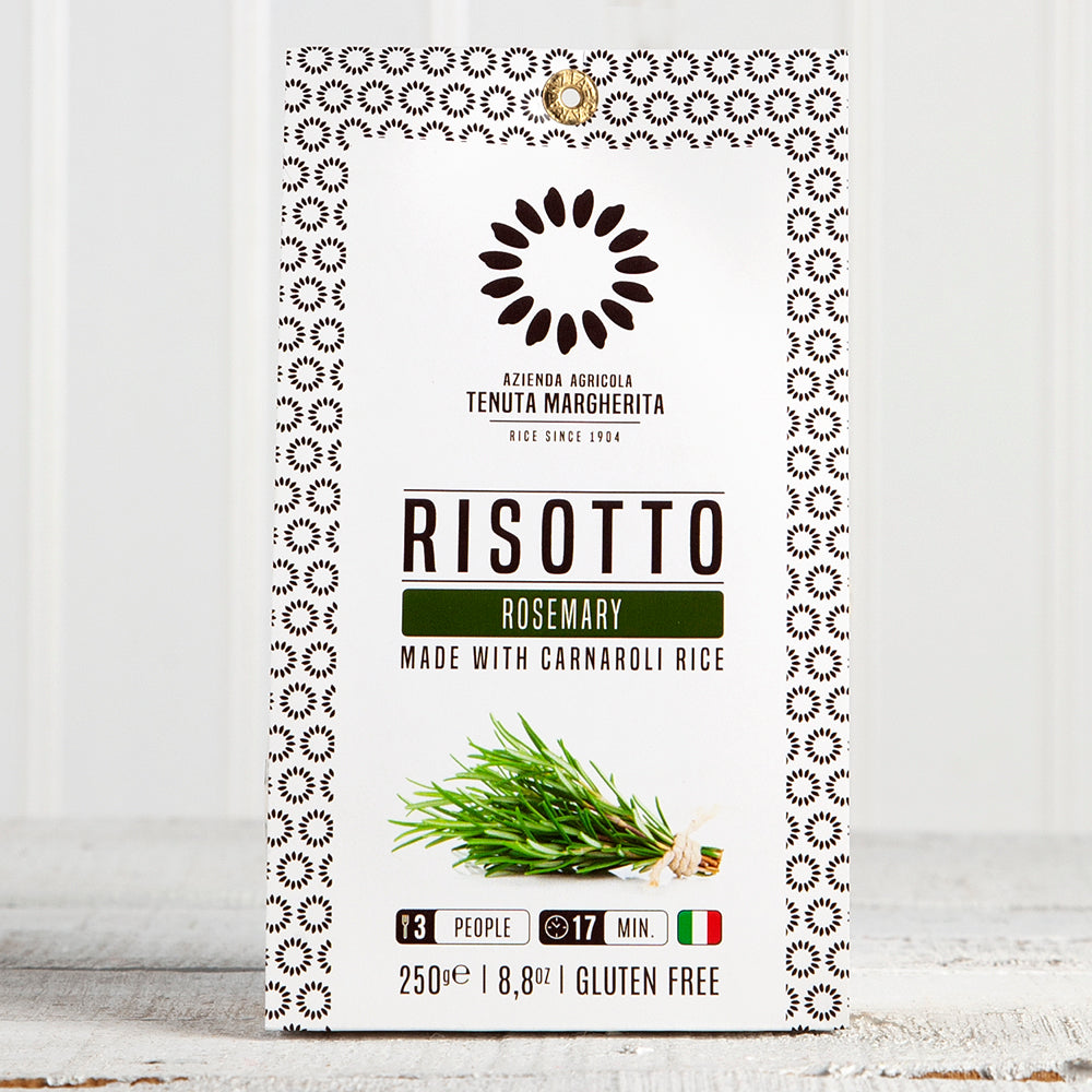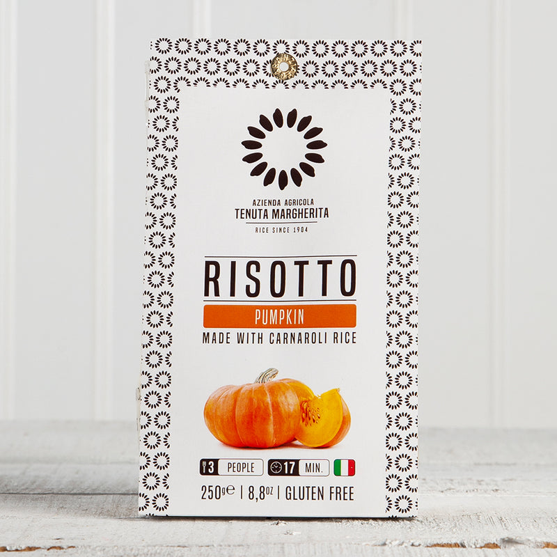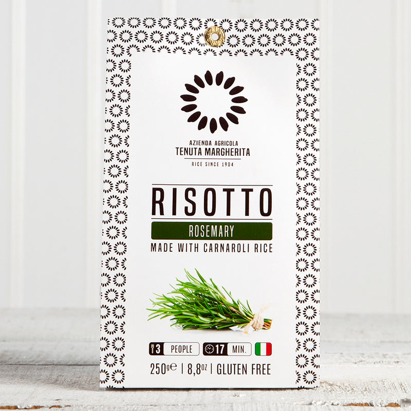 These simple risotto mix recipes are absolutely delicious, healthy and simple to prepare. Delicate flavors of rosemary and/or the pumpkin risotto in one bag. Made exclusively with carnaroli rice milled by Tenuta Margherita in the capital of the Piedmont region of Italy. Add a little butter or olive oil, hot water and 17 minutes for a luscious, creamy risotto (no chopping or constant stirring required)—and finish with grated Parmigiano-Reggiano cheese!