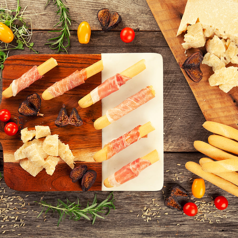 Sample Volpi's recent Good Food award winning Heritage Prosciutto with Solo di Bruna Parmigiano Reggiano and crispy long breadsticks from Piedmont. Volpi dry cures and ages the heritage prosciutto ham for a minimum of 18 months. Volpi’s Heritage Prosciutto delivers an unparalleled flavor – bringing earthy notes and melt-in-your-mouth texture in every bite. Paired perfectly with aged 24 month Solo di Bruna Parmigiano Reggiano by Valserena, made from fresh Italian brown cow's milk. Enjoy with crunchy Grissini rustic and handmade breadsticks from Piedmont.